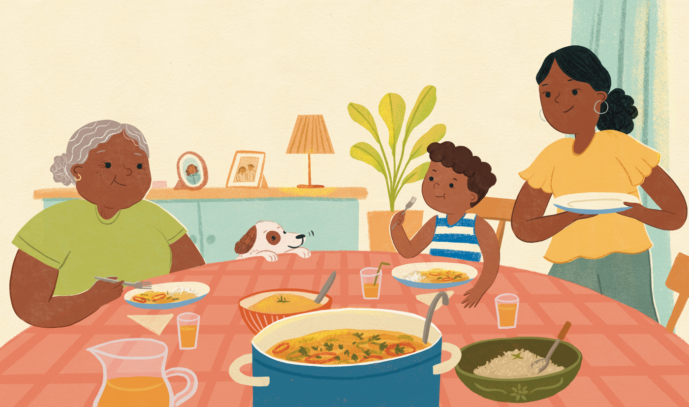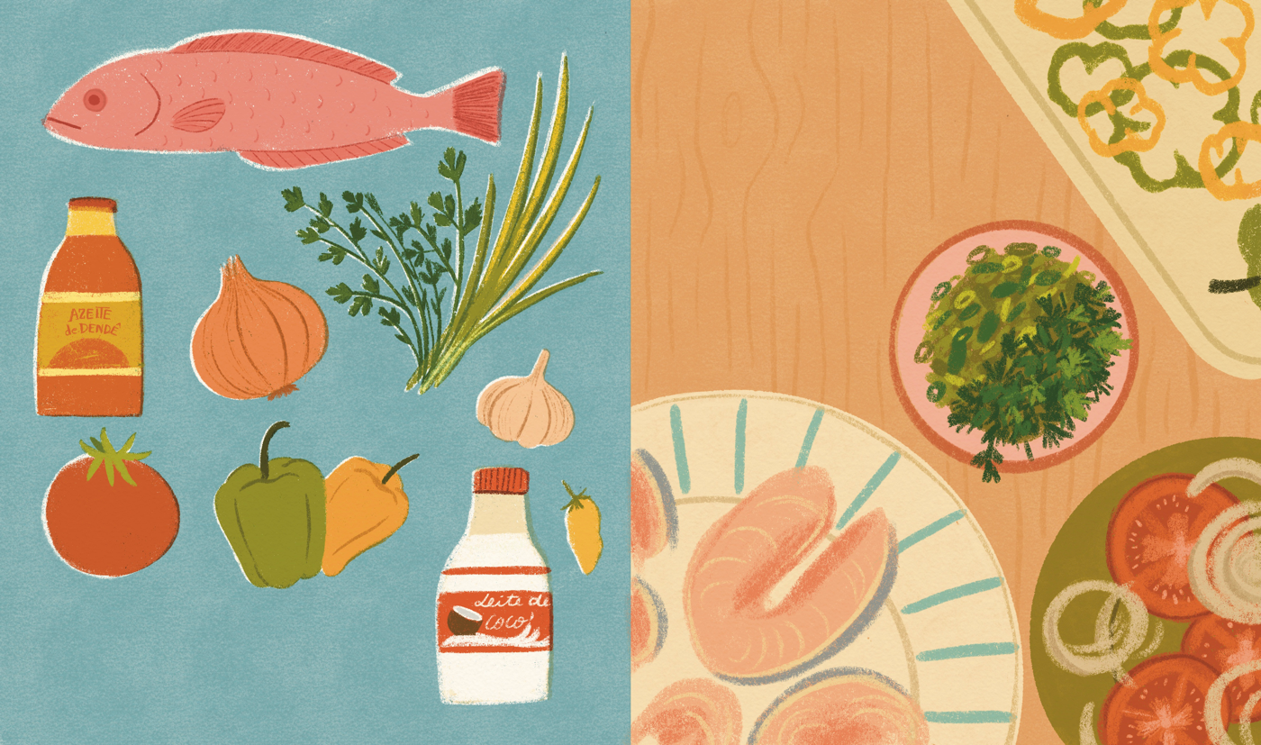 Conceptual children's book project inspired by Moqueca, a traditional Brazilian dish, exploring the richness of cuisine as a bridge between generations and showcasing how cooking and sharing meals strengthen family bonds.